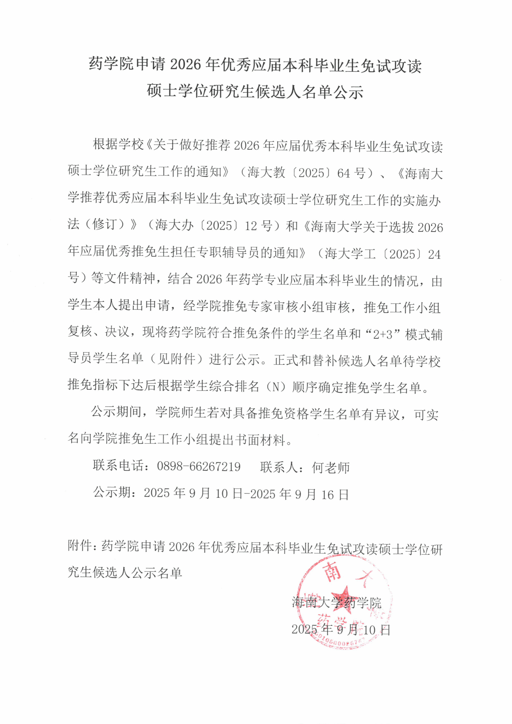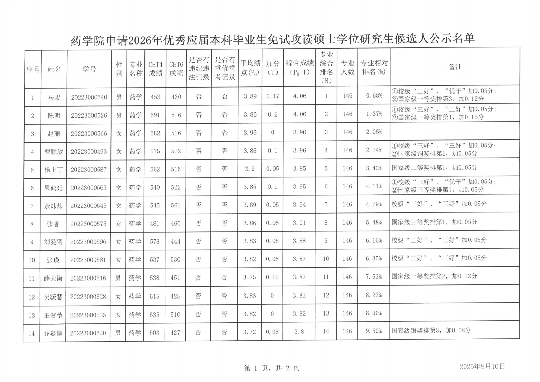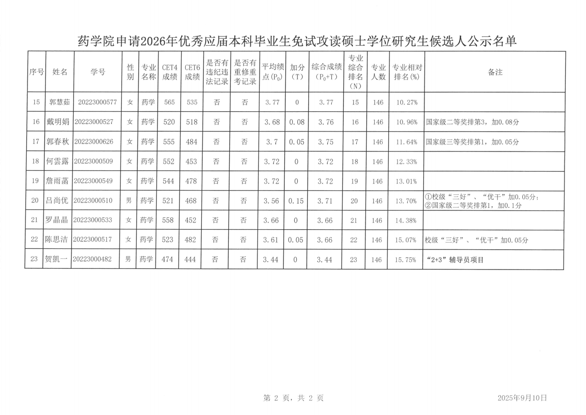 必赢bwin网页版申请2026年优秀应届本科毕业生免试攻读硕士学位研究生候选人名单公示